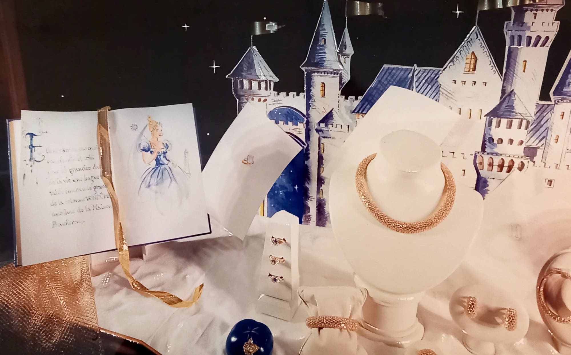 Décor de vitrines pour le joaillier Boucheron, Place Vendôme à Paris.