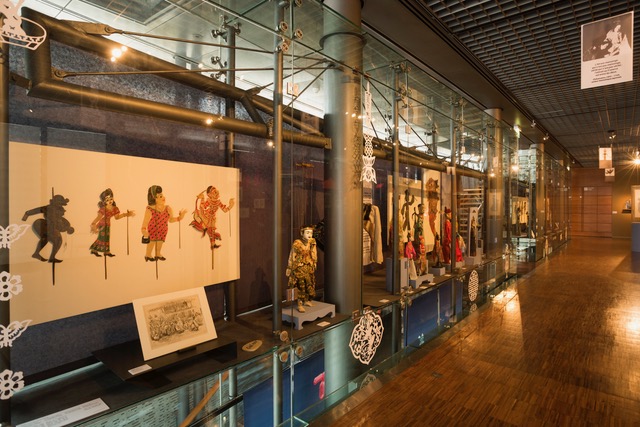 Une exposition de marionnettes du monde : itinérante, didactique, à géométrie variable. Adaptée à des espaces de 50 à 200 m2.
